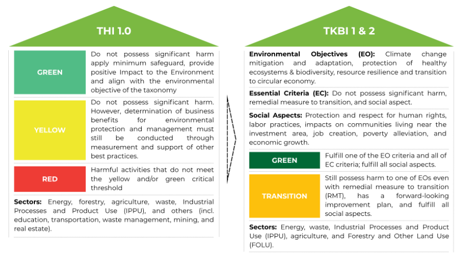 For instance, under the Green Taxonomy (THI) 1.0 2022, economic activities were categorized using a three-tier “traffic light” system. This consists of green (activities that cause no significant harm and improve environmental quality), yellow (activities with no significant harm but requiring further verification), and red (activities that are environmentally harmful). In contrast, the Indonesia Taxonomy for Sustainable Finance (TKBI) 1 and TKBI 2, released in 2024 and 2025 respectively, simplified the classification into only two categories, green (activities that align with Indonesia’s NDC commitments), and transition (those in the process of shifting toward greener operations). In turn, this reclassification has created inconsistencies, as some activities categorized under THI 1.0 are no longer included under TKBI 1 and 2, and vice versa. As a result, investors and institutions face confusion about which taxonomy to adopt, contributing to regulatory uncertainty and hesitancy in financing decisions.